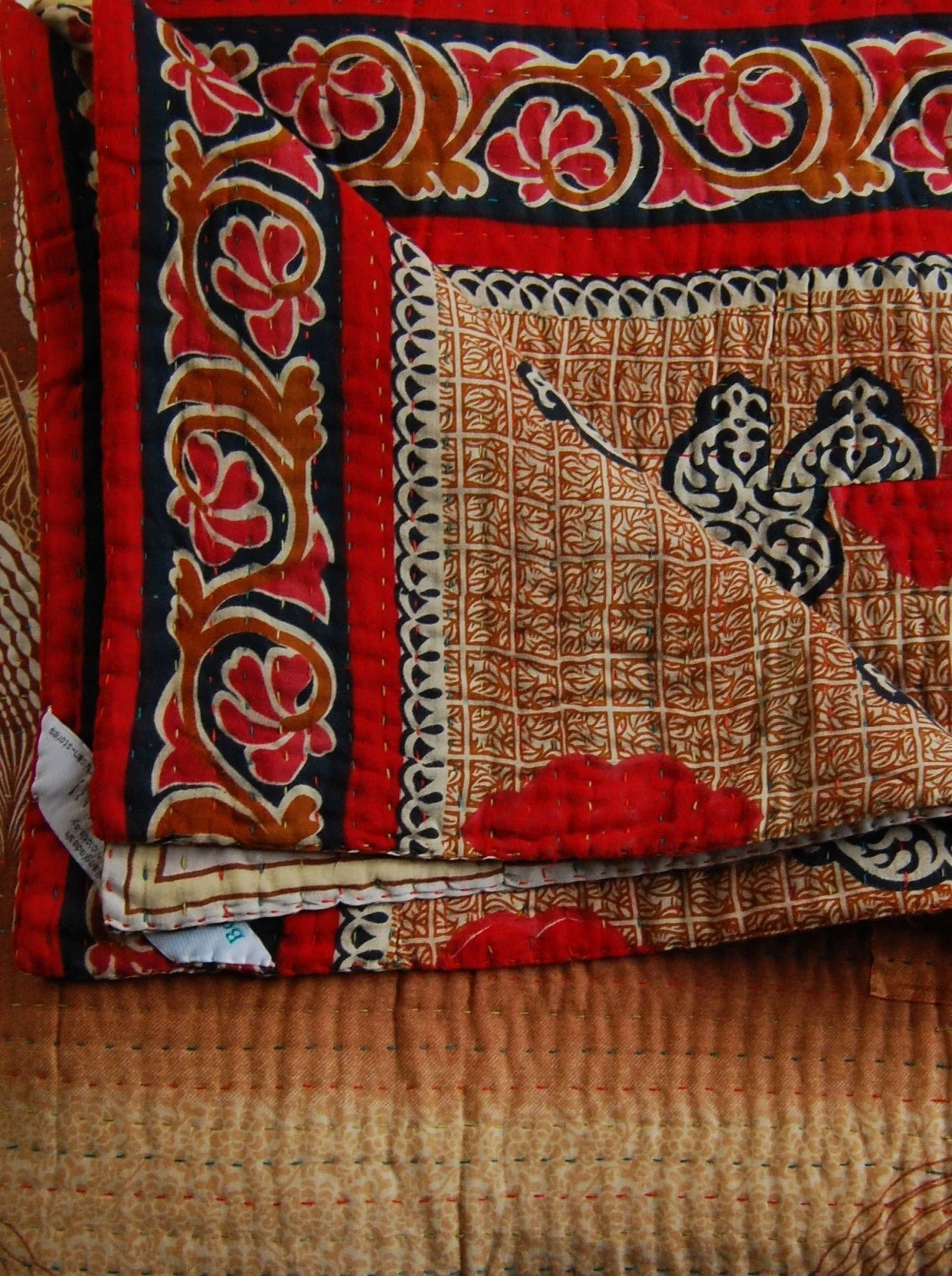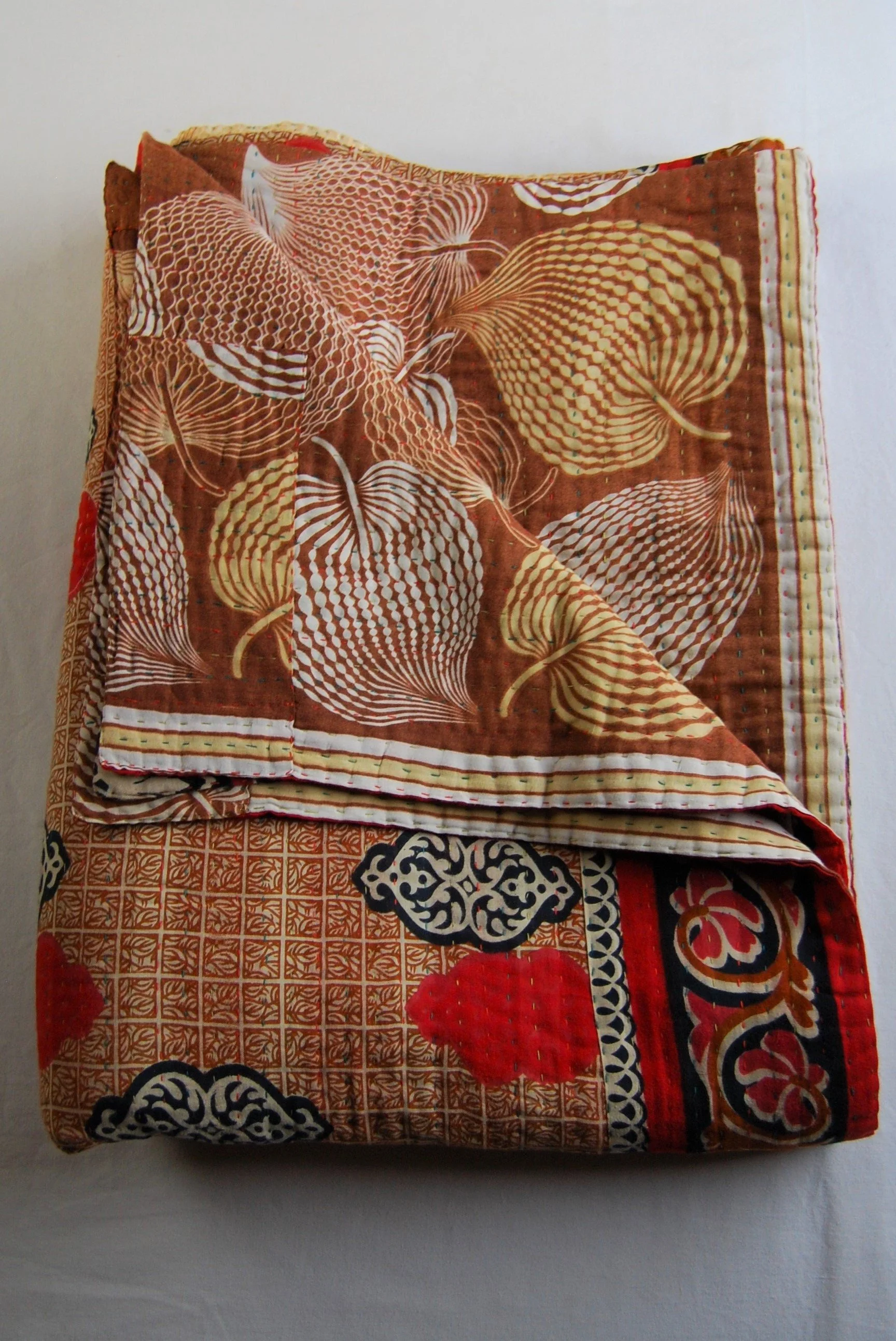 A beautiful, soft, 100% upcycled cotton sari, handmade, kantha quilt.