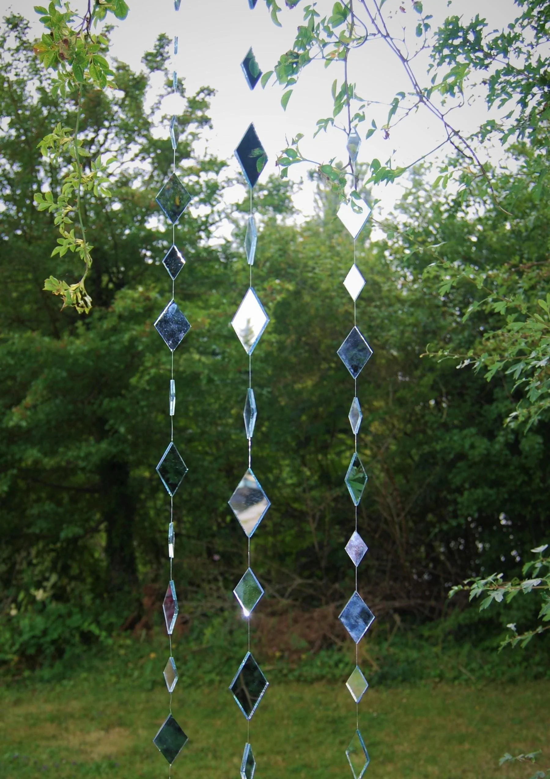 Long Mirror Garland, Glass Mirror String Light Catcher, Hanging Sun Catcher, Hanging Garden Decor, Garden Sun Catcher, Tree Decoration