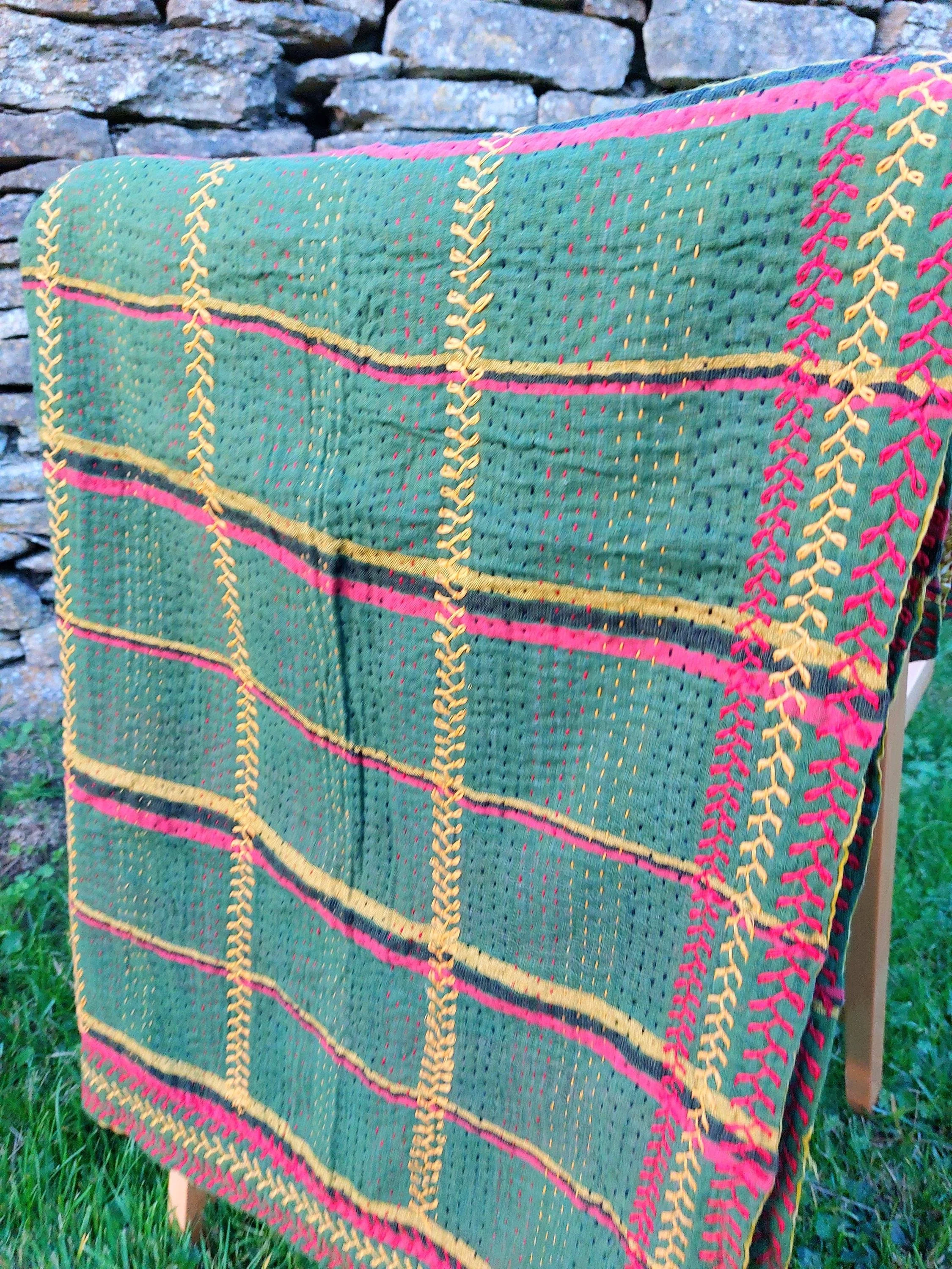 ❃ The word 'kantha' means 'patched cloth' and skilful repairs simply enhance the vintage character of this quilt. All our quilts are perfectly imperfect, with subtle variations and patches that celebrate their handmade nature. Our vintage kantha quilts are handcrafted from vintage textiles which have lived a full life before becoming a kantha quilt.