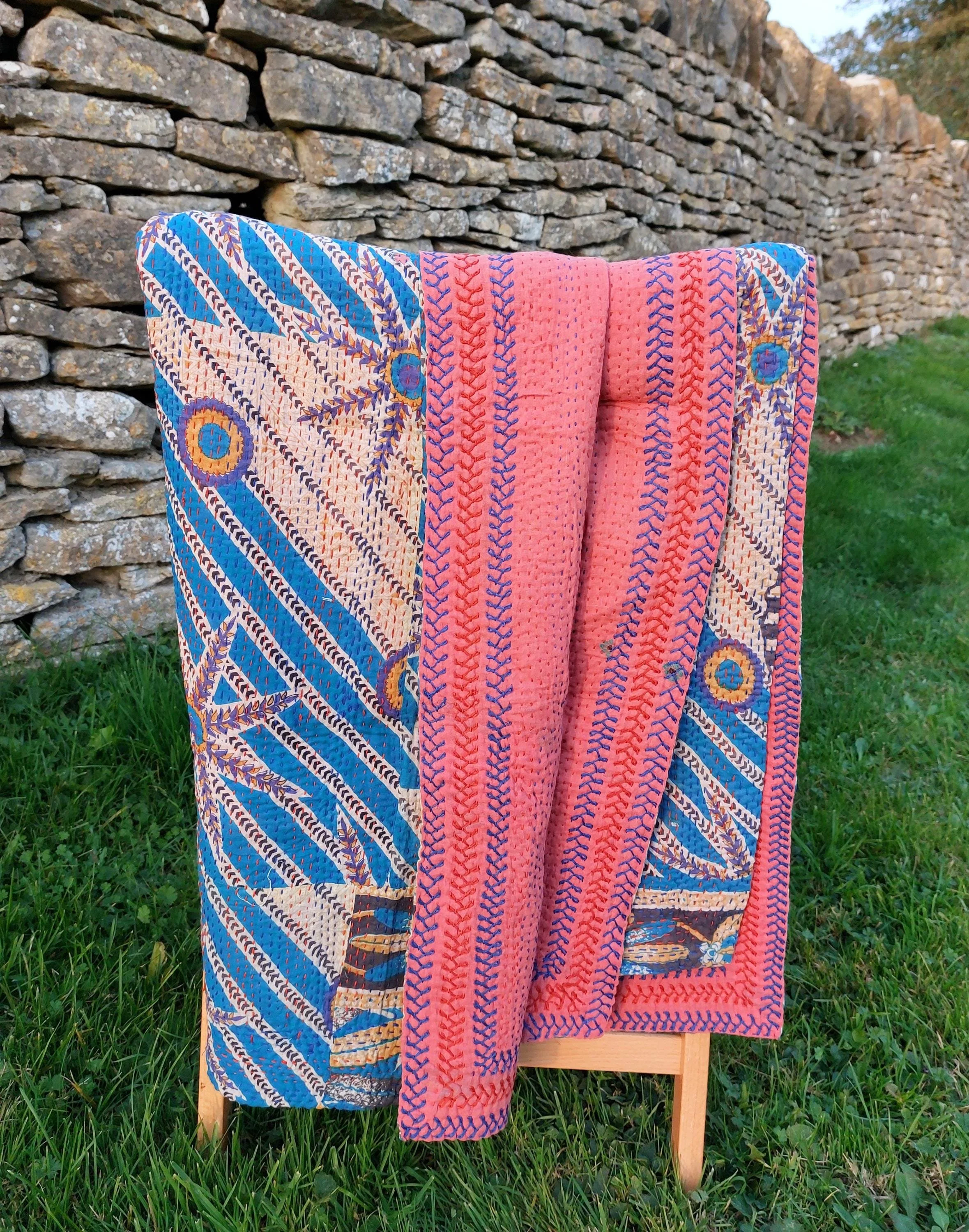 ❃ Care: Our kantha quilts are machine washable (and in fact get softer over more time & use). To extend the life of your kantha we recommend: limiting full washing, do not use bleach or harsh detergents, use cold settings and hang dry or tumble on low heat.