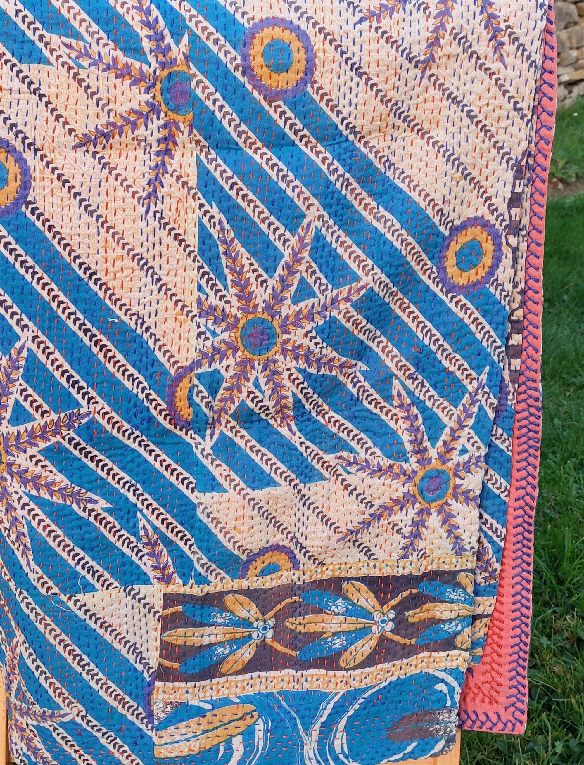 ❃ The word 'kantha' means 'patched cloth' and skilful repairs simply enhance the vintage character of this quilt. All our quilts are perfectly imperfect, with subtle variations and patches that celebrate their handmade nature. Our vintage kantha quilts are handcrafted from vintage textiles which have lived a full life before becoming a kantha quilt.