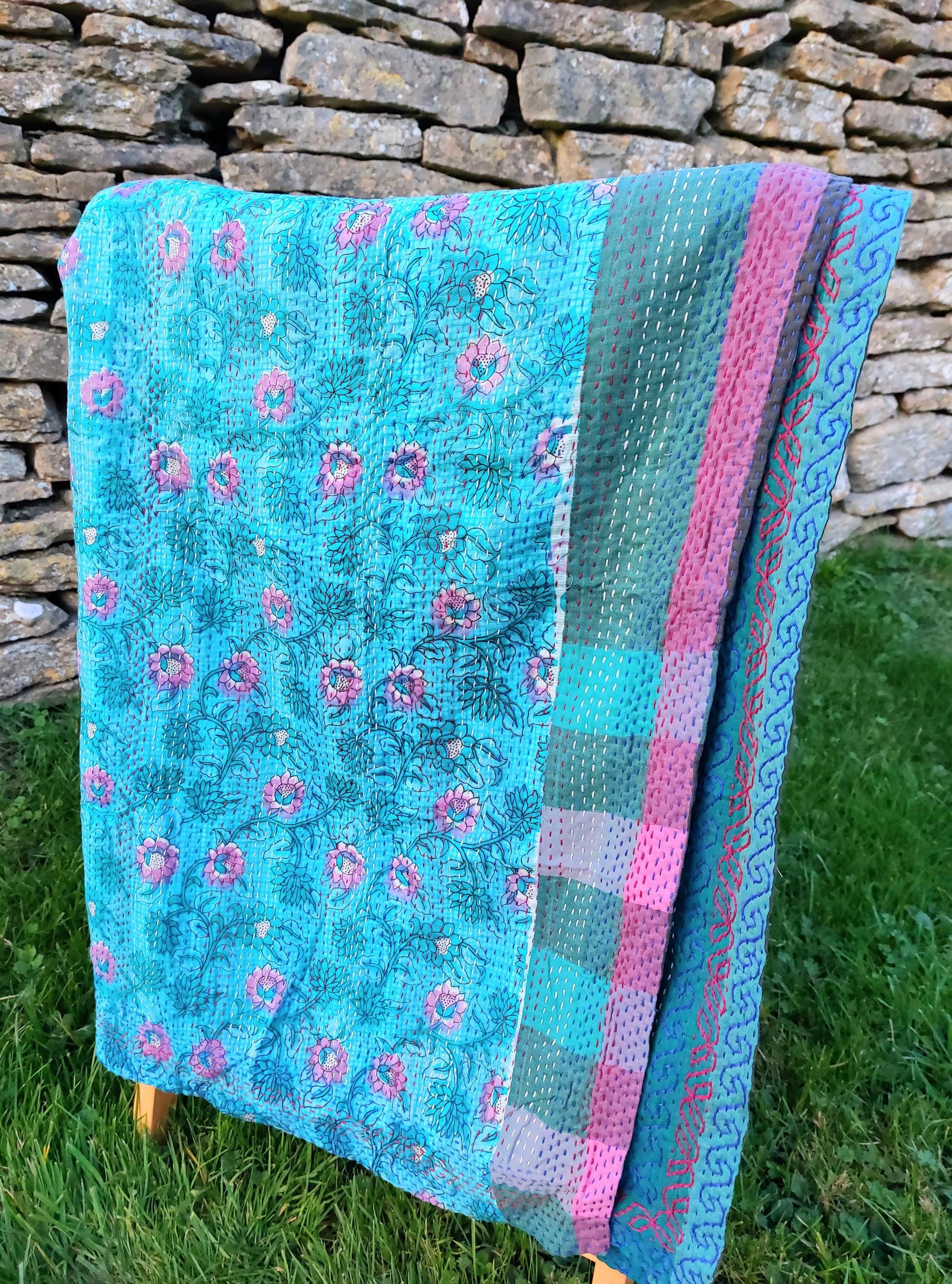 ❃ Handcrafted from layers of time softened, repurposed sari cloth, quilted together by hand using a traditional kantha stitch and rows of complex regional stitching.